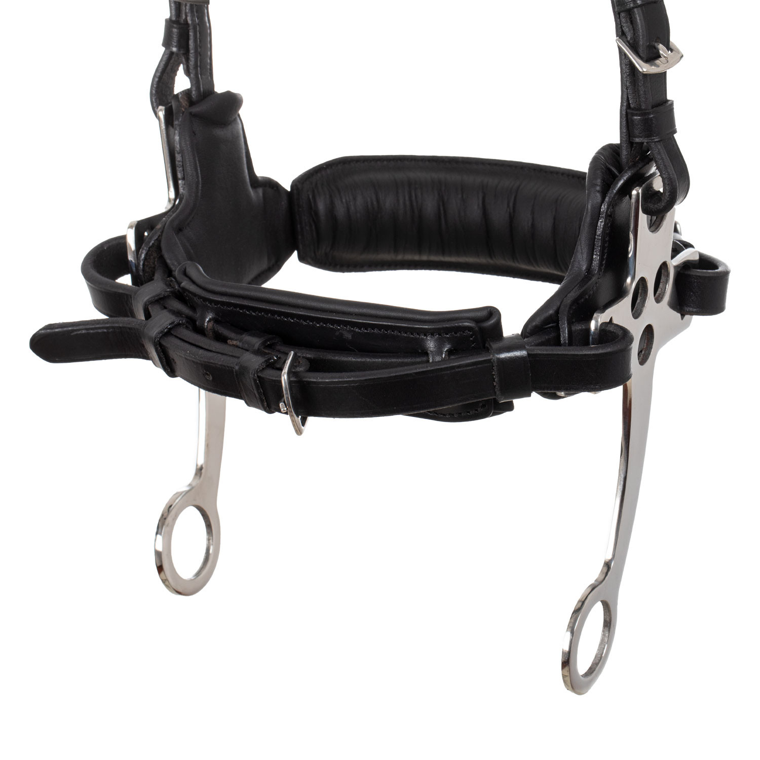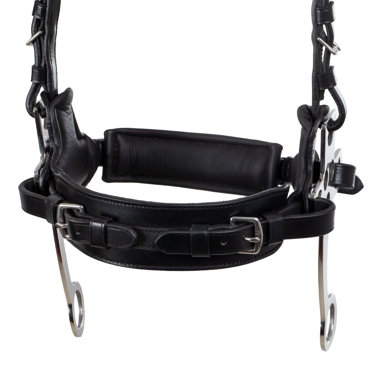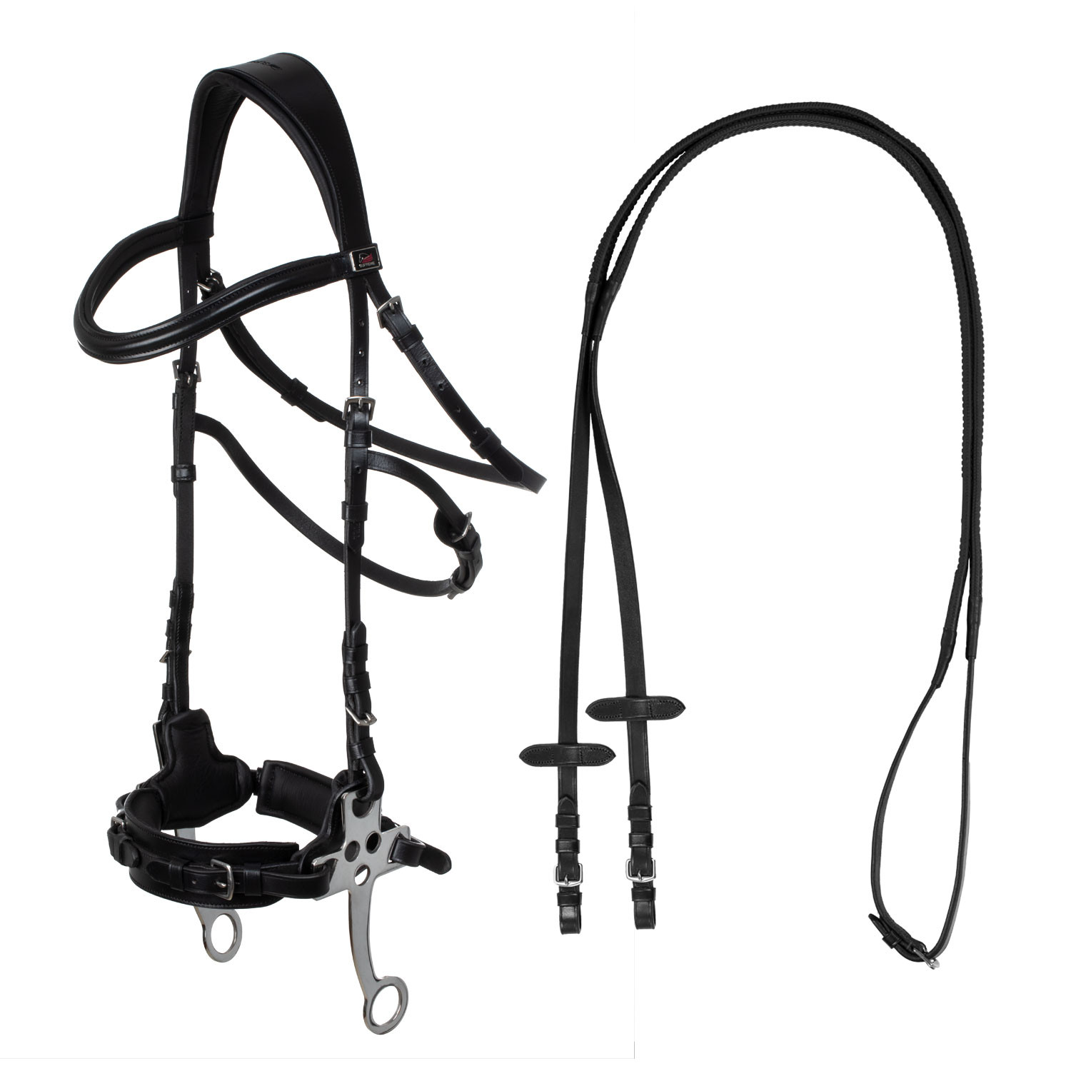Briglia con hackamore progettata per cavalli sensibili o con problemi alla bocca, in cuoio di alta qualità e completa di redini.