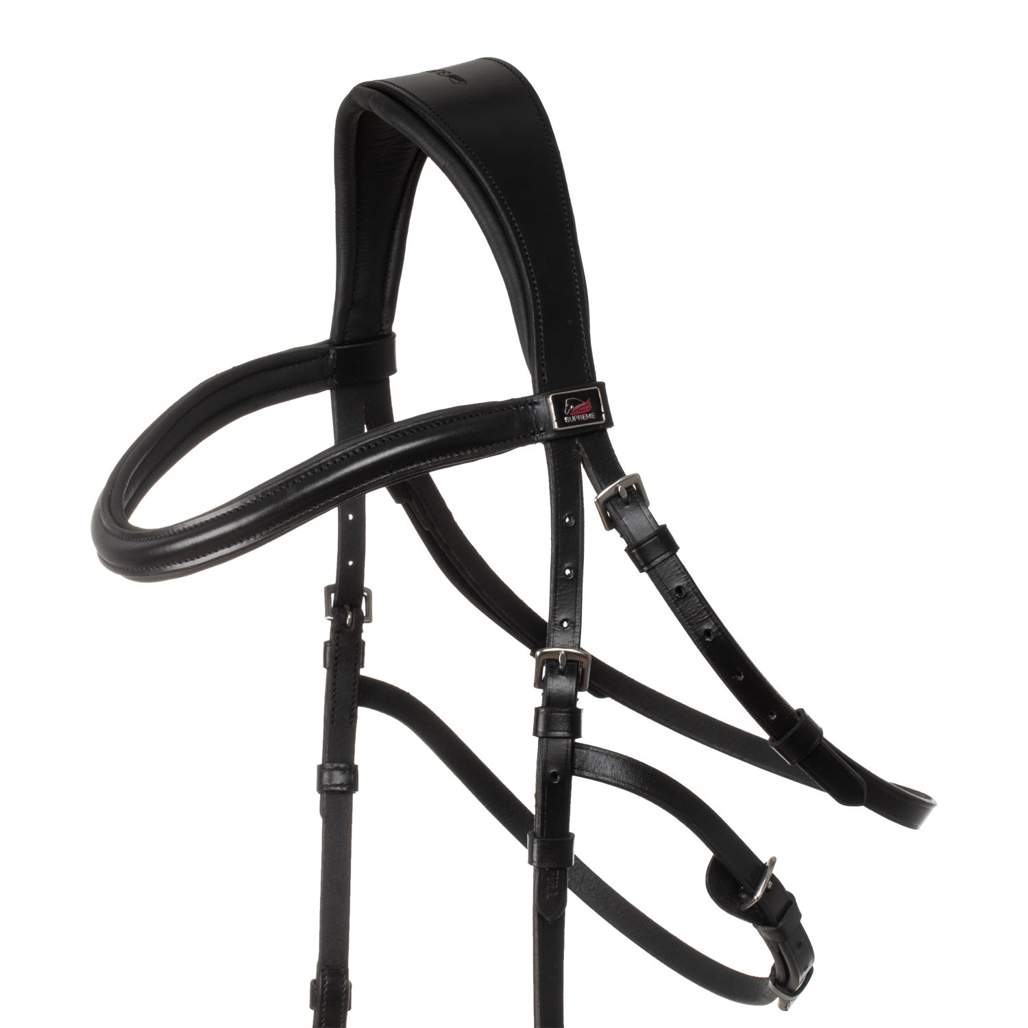Briglia completa per montare bitless ( senza morso ) realizzata in cuoio liscio molto morbido e di alta qualità, con sopratesta e nasiera imbottiti per maggiore comfort. Ideale per cavalli con problemi alla bocca, troppo sensibili o abituati ad essere montati bitless.