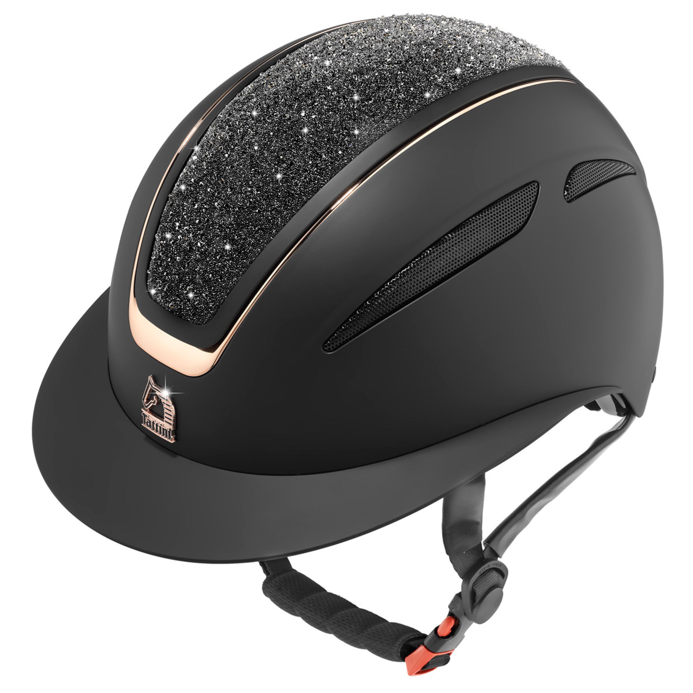 Luxury cap Nettuno con profili lucidi oro rosa, caratterizzato da una placca con cristalli super brillanti e con un’inedita personalizzazione: il logo Tattini bordato in oro rosa.