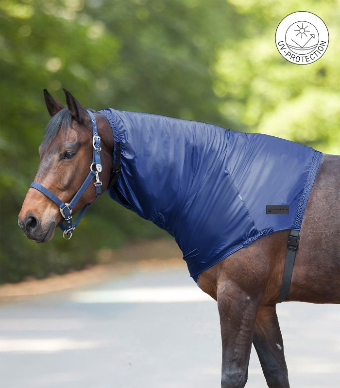Protezione efficace della criniera e della zona soggetta al prurito dal garrese alla testa. Tessuto in fibra speciale traspirante. Il sottopancia assicura una tenuta ottimale.